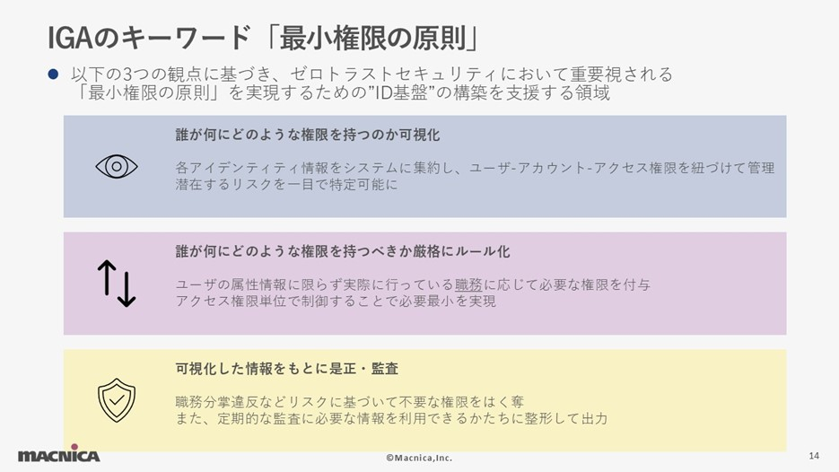IGAのキーワードは「最小権限の原則」です。